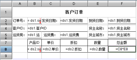 (8) 在F5单元格输入表达式:= ds1.货主城市