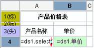 1, 在A4单元格输入表达式:=ds1.select(产品名称)