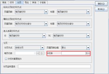 3, 将“报表属性”的【分栏数】一项设为:3,如图所示: