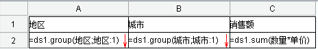例5:ds1.group(省份;省份:1; sum(工业产值):-1)