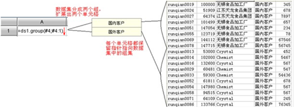 group函数是对数据集按照某个字段或者表达式进行分组,获得一组组的集合,然后从每组中取出一个指定字段或者表达式的值,放到单元格中进行扩展,扩展出来的每个单元格都保留了一个指针指向当前的组集,该组集称为当前组。