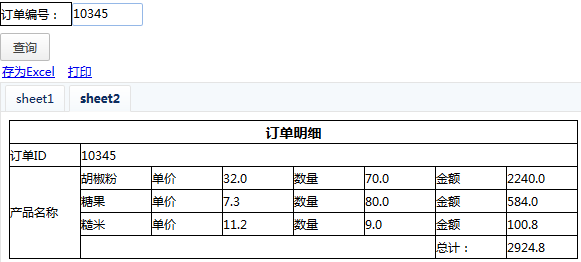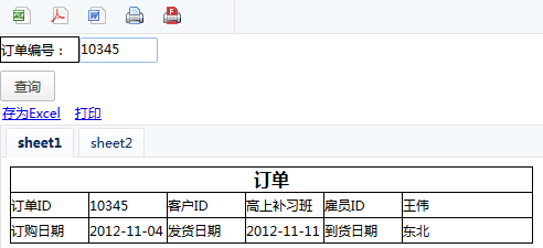 比如,在订单表和订单明细表中,我们将两个表的订单ID设置为参数。单独将报表发布后,看到的查询页面如下图所示。