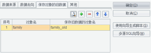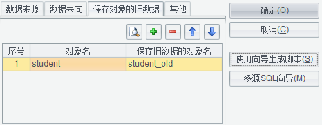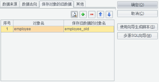 通过多源SQL向导可以快速生成数据来源、数据去向和保存对象的旧数据。点击【多源SQL向导】按钮,打开多源SQL编辑向导界面,如下图所示: