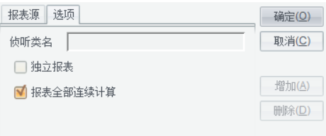 在报表源编辑界面中切换到“选项”标签页,设置报表组的基本属性。如下图所示: