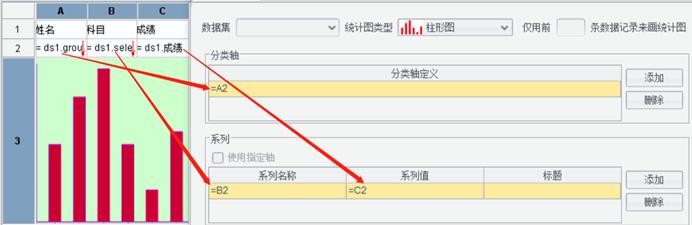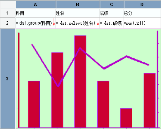 单元格表达式为 =ds1.select(${arg1}),而arg1的值为name,那么该表达式会被替换成=ds1.select(name),替换后才进行表达式的运算。