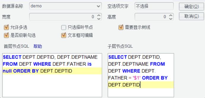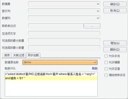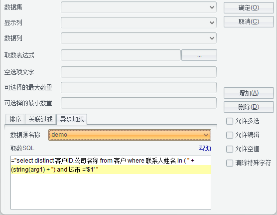 用于设置填报表回填数据时所用到的SQL语句等。通过点击【增加】按钮后的向导设置回填SQL语句。