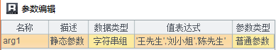 参数是一个变量,因此有数据类型。支持的数据类型有:整数、长整数、短整数、大整数、浮点数、双精度数、数值、实数、字符串、日期、时间、日期时间、布尔值、长整数组、短整数组、大整数组、浮点数组、双精度数组、数值组、日期组、时间组、日期时间组、字符串组、自动。参数的默认数据类型是字符串。