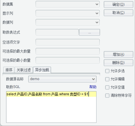 数据集记录行设置:用于控制数据集的按行取数。