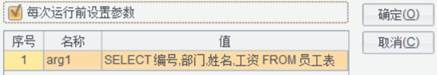 如上图所示,在SQL语法里,需要用到参数的地方写上问号,不用考虑参数的数据类型,程序中会自动转换。然后在参数tab页中按照问号顺序,写入参数名或含参数的表达式,如下图所示: