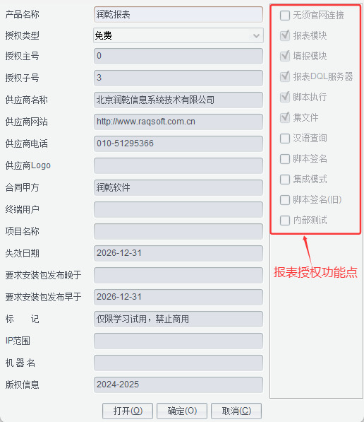 如果要重新配置授权文件可以点击设置授权文件窗口【打开】按钮选择新授权文件。
