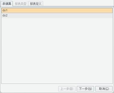 点击 编辑à生成报表à交叉式 菜单项,会出现数据集向导对话框,只有一个数据集时会默认跳过数据集向导,直接进入报表定义: