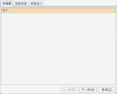 点击 编辑à生成报表à网格式 菜单项,会出现数据集向导对话框,只有一个数据集时会默认跳过数据集向导,直接进入报表定义: