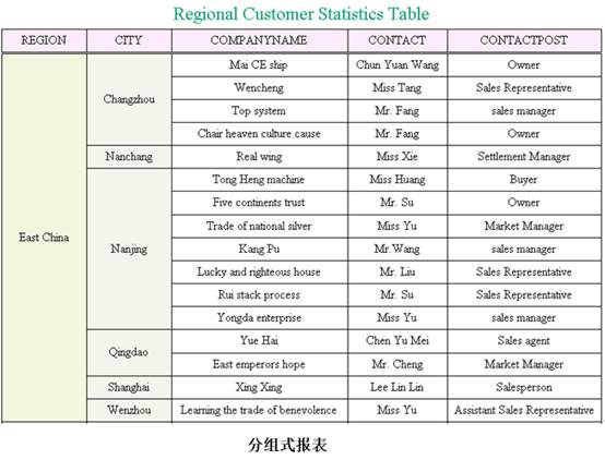 做一张网格式报表到此就结束了,如果要通过向导做分组报表,则在第二步“报表类型”组框中选择分组报表: