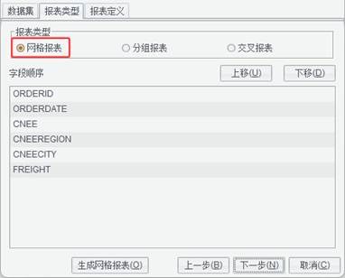 点击【下一步】按钮,选择报表类型,分别有网格式、分组式和交叉式三种报表风格。