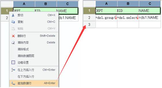 本菜单项的功能是用于在报表的最后一行下边添加一行。