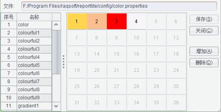 报表设计器默认安装路径\reportlite\config\color.properties)。