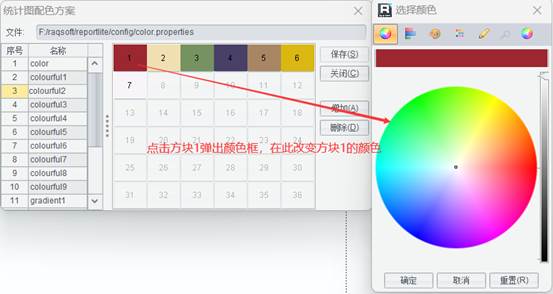 统计图配色方案保存在配色方案文件color.properties中(配色方案文件默认的存放位置: