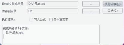 注:导入目录文件夹时,选择【保存到目录】,Excel目录文件夹及转换后的.rptx文件都会保存到指定目录下。