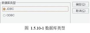 点击【新建】按钮,弹出数据库类型对话框,数据库类型有“JDBC”、“ODBC”两种。如图1.5.10-1所示: