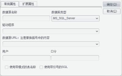 扩展属性:除了设置以上所述的常规属性外,有些数据库还要求设置一些扩展参数,这时候就可以进入到扩展属性tab页下进行设置了。不同的数据库,扩展属性中的参数名称是不一样的,这些参数名称都是在设置完成了常规属性以后,系统根据数据库类型自动添加的。有些数据库是没有扩展参数的,例如access。
